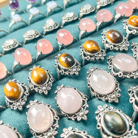 Бестселлер, драгоценный камень, натуральный кристалл, розовый кварц, мох, агат, аквамарин, лунный камень, Ювелирное кольцо для подарка на День Святого Валентина